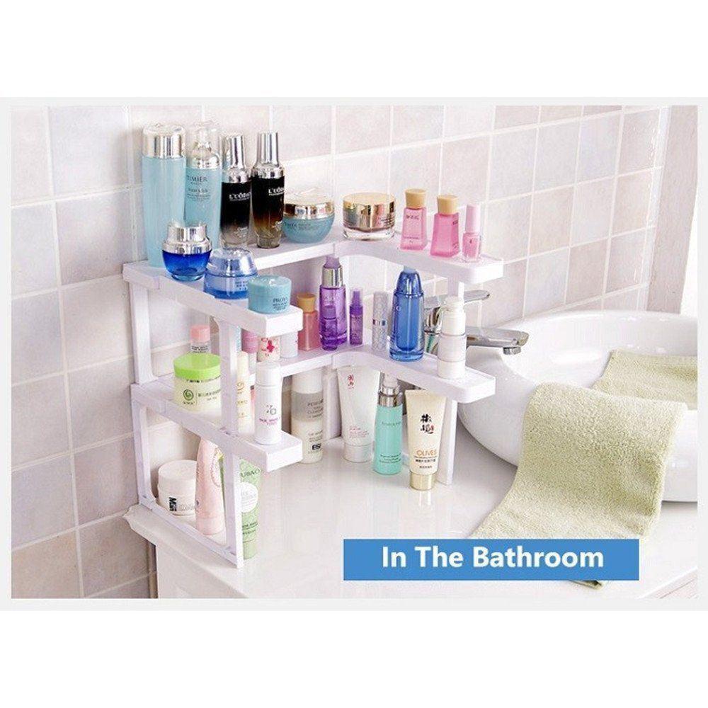 Adjustable Spice Rack - 2 Layers Kitchen Cabinet Cupboard Organizer Adjustable Kitchen Storage Shelf Spice Rack Countertop Organizer Cabinet Storage