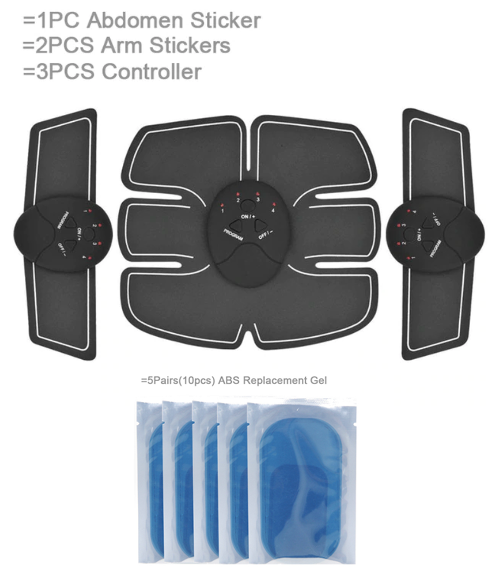 This trainer design has 4 pads on each side giving it 8 in total which covers the total abdominal area! It burns fat as well as strengthen and tighten abdominal muscles including the 8 pack abs, bicep, vastus lateralis muscle, vastus medialis muscles. There are 6 different modes and 10 intensities (workouts) for choosing different frequency of vibration and current strength. The trainer will shut off automatically after 12 minutes training.