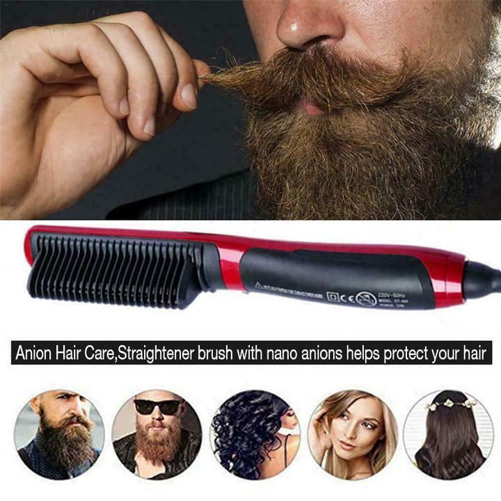 Hair Straight Styler - Multifunctional Beard Straightener Styler Brush Men Heat Hair Ceramic Curler Electric Hot Comb Care Machine