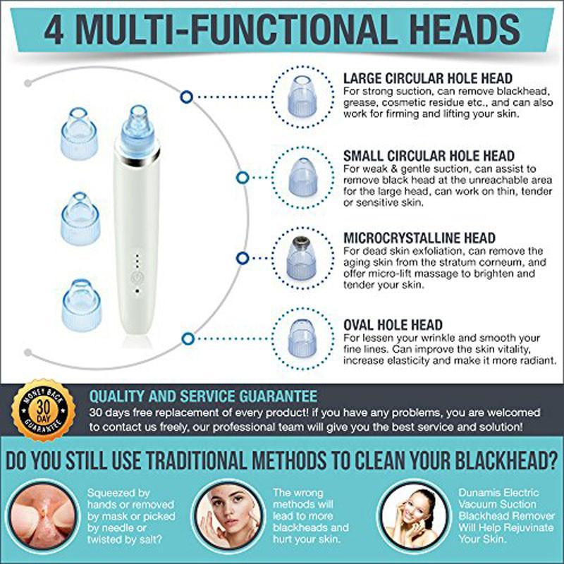 This head can remove blackheads effectively & quickly by promoting blood and lymphatic circulation with strong suction, letting the skin breathe & rejuvenate. Can be applied to larger blackheads on the face & body.